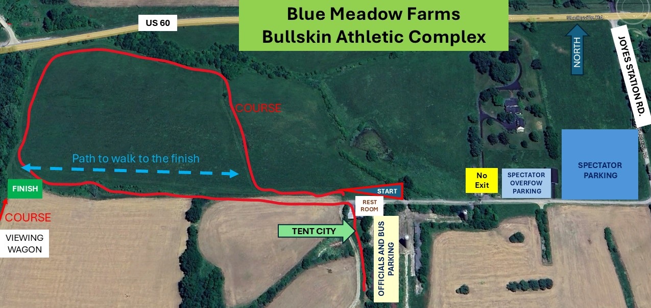Overall Map of the Bullskin Course (4-13-20) - shows access, where to park, different loops, etc.